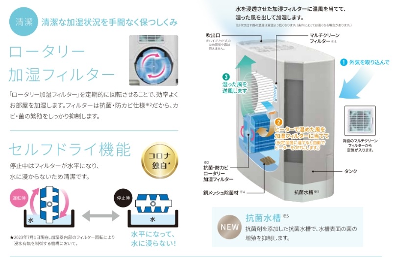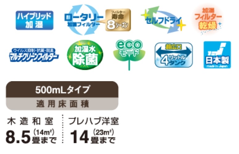 | 加湿方式 | ハイブリッド(加熱気化)式 |
