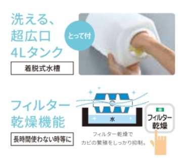 ●フィルター乾燥機能 ●チャイルドロック ●本体キャリングとって ●給水メロディー ●切タイマー