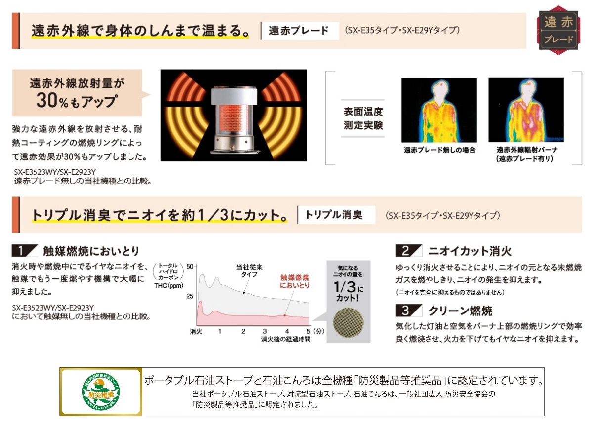 [8畳用]ポータブル石油ストーブ(反射型) SX-E2924Y(HD) 商品型式:SX-E2924Y(HD) 商品コード:01350020000 21,000円(税込)