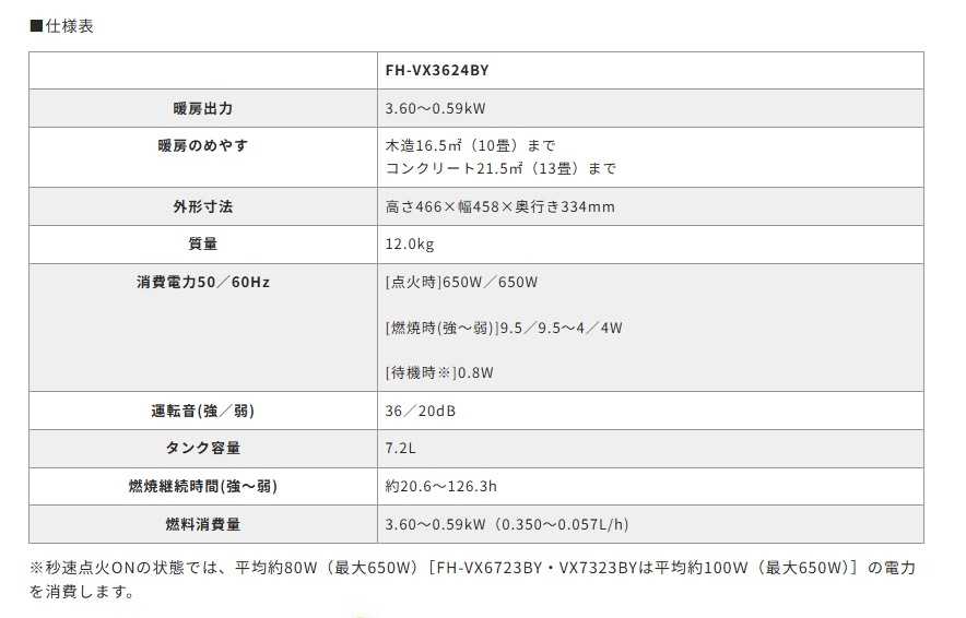 [10畳用]石油ファンヒーターFH-VX3624BY(W) 商品型式:FH-VX3624BY(W) 商品コード:02351780000 29,750円(税込)