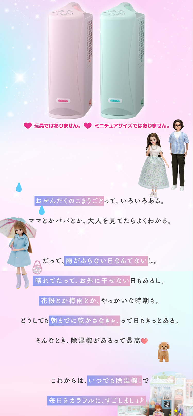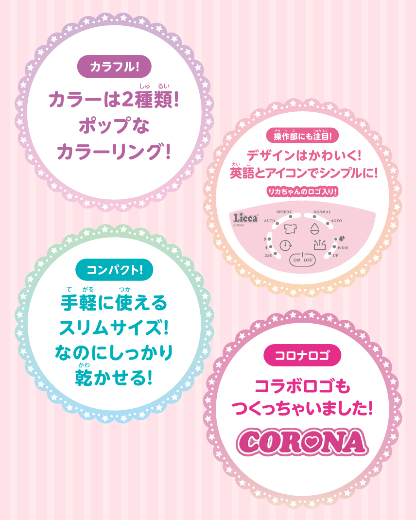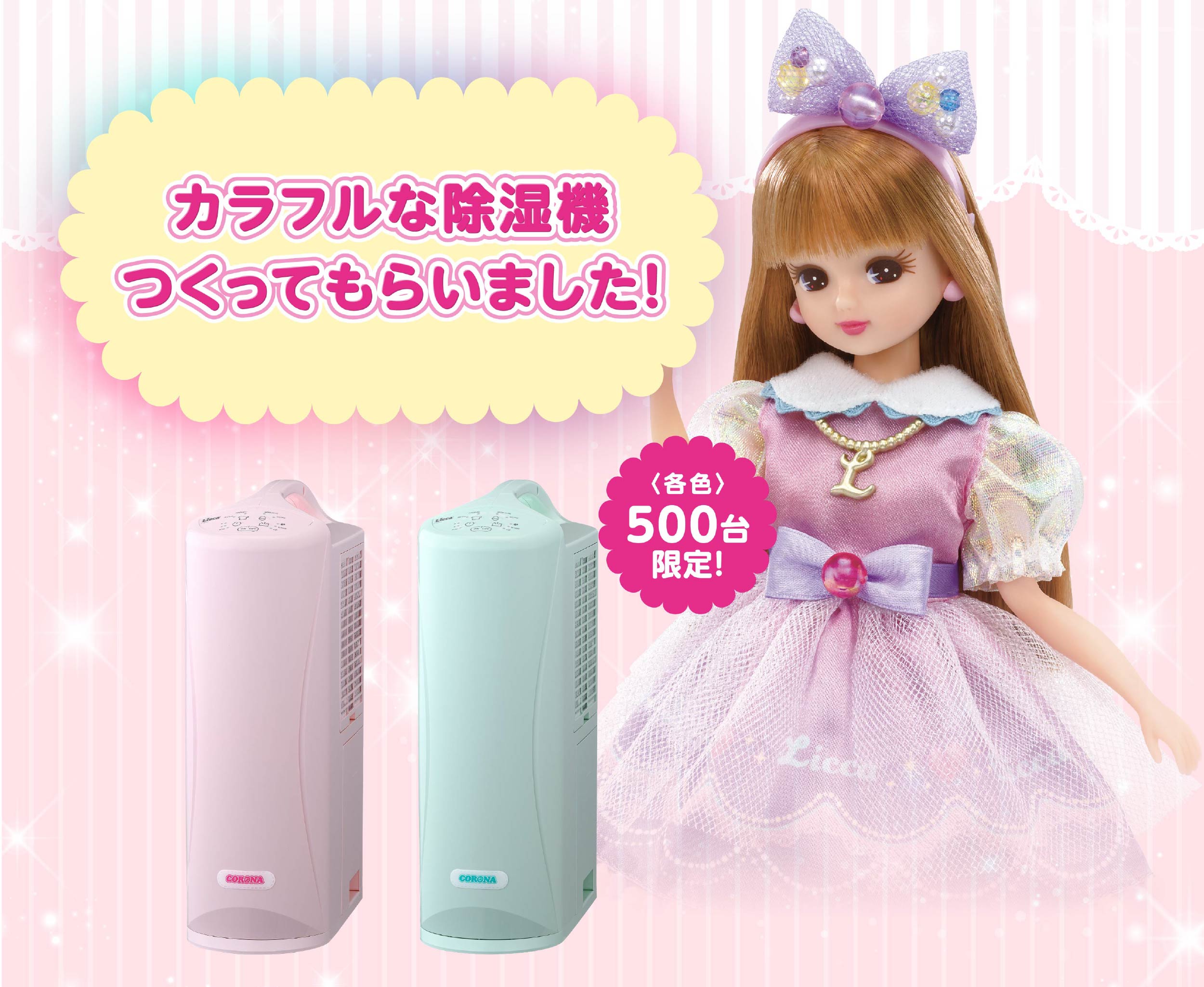 【配送希望日選択不可】CORONA × リカちゃん カラフルポップな衣類乾燥除湿機 LD-0503CS(P)(G) 商品型式:LD-0503CS(P)(G) 商品コード:34358480000