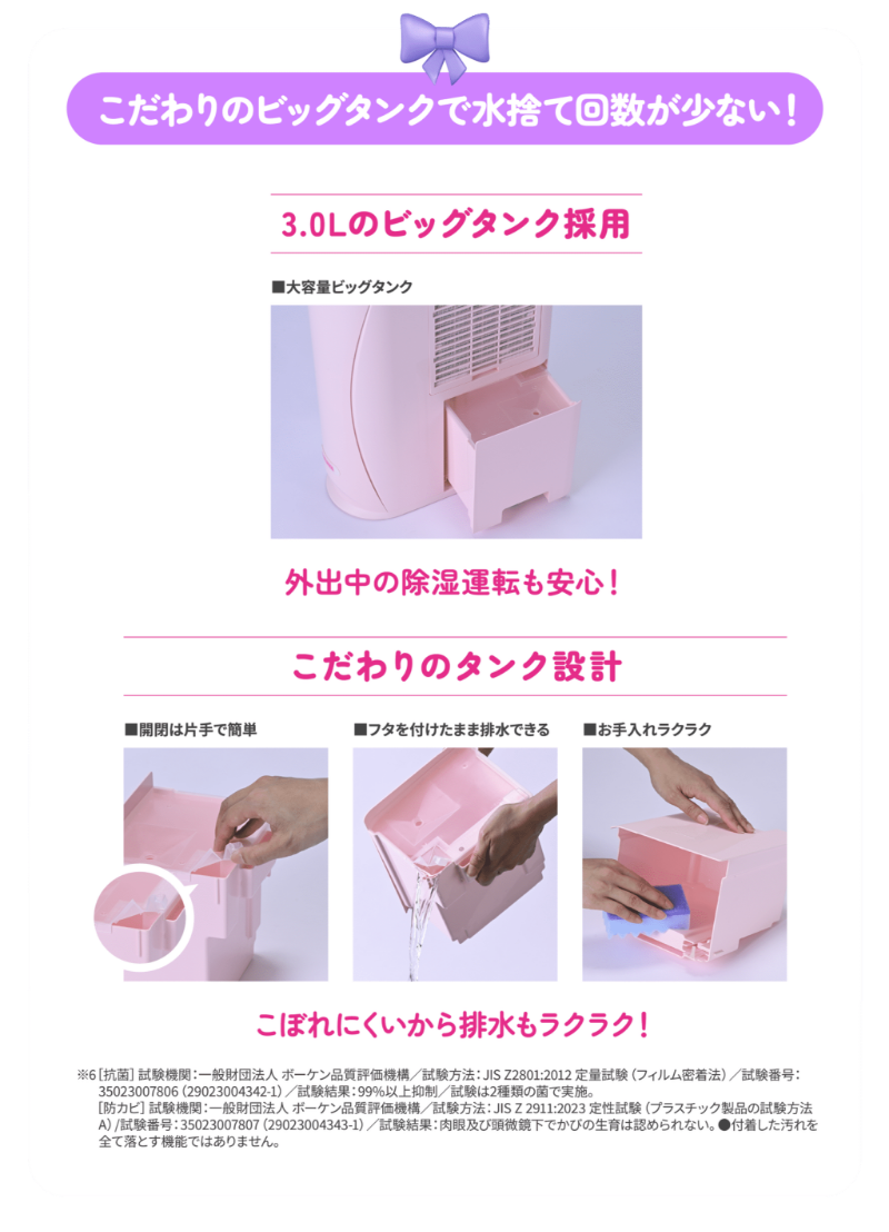 | 排水タンク容量 | 約3.0Lで自動停止 | ||